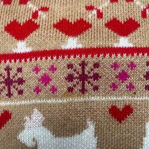 Charter Club Tan Scottie Dog Embellished Sweater Womens Size M Hearts Red Pink