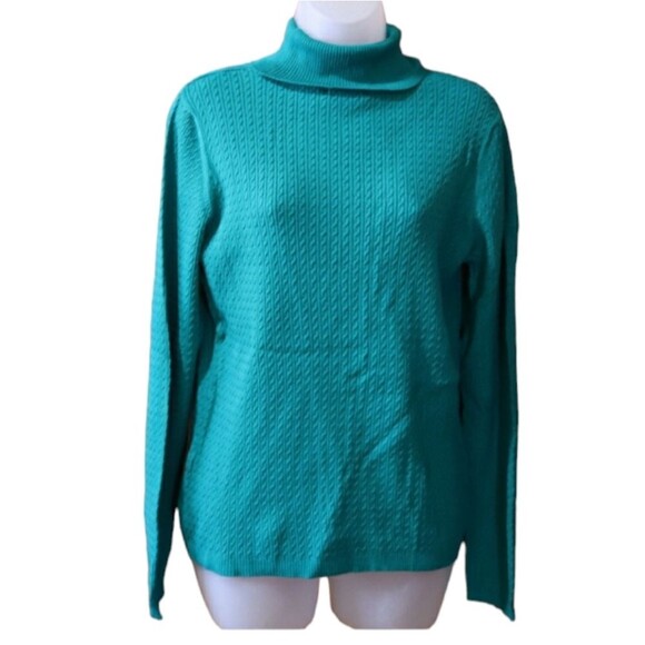 Charter Club Teal Cable Knit Turtle Neck Sweater LG