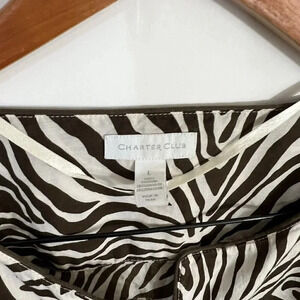 Charter Club Tiger Print Thin Blouse Cream Brown Womens Large Gold Metal Buckle