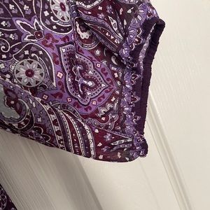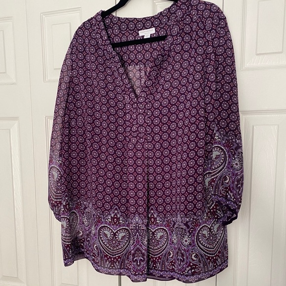 Beautiful lightweight & sheer print v neck top with matching purple camisole to wear underneath. 3/4 sleeves with elastic.