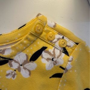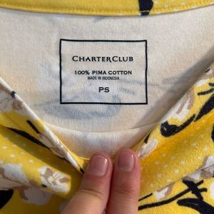 Charter Club 3/4 Sleeve Too - button detail at should - yellow/black/white floral -100% Pima cotton