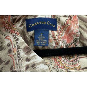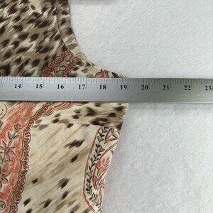Charter Club Top Womens 8 Cheetah Paisley Print Back Button Shell Silk Beige