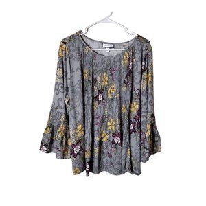Charter Club Top Womens Large Pleated Front Bell Cuffs Peasant Dual Sided Fabric