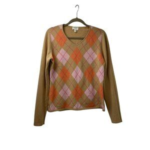 Charter Club Unisex Medium 2-Ply 100% Cashmere Pullover Sweater Argyle Preppy