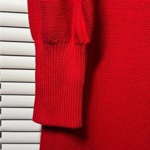 Chic long sleeve dress with cable knit design. Vibrant red color. Perfect for stylish occasions. Fits the Fall colors!