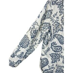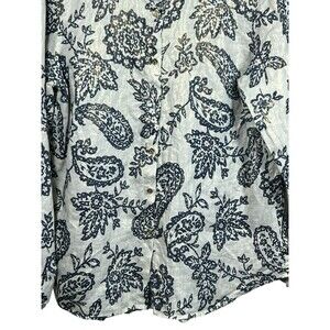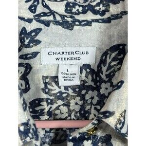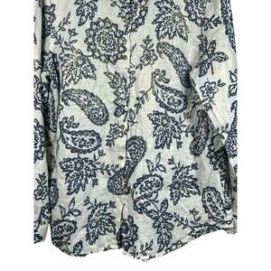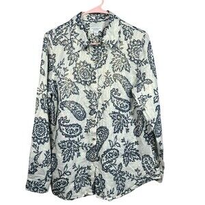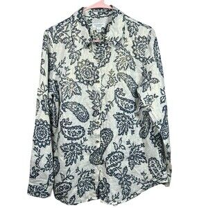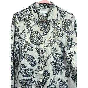 Charter Club Weekend Linen Shirt L Metallic Floral Paisley Casual Button Down