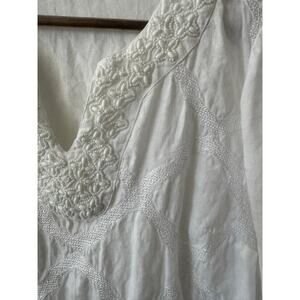 Charter Club White 3/4 Sleeve 100% Linen Embroidered Tunic Top Size Small