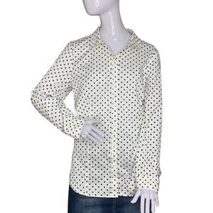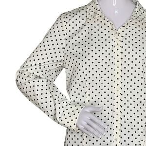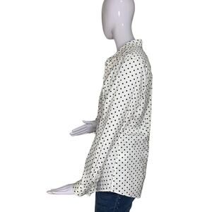 Charter Club White Blouse with Black Polka Dot Long Sleeve Size 16 Buttons Down