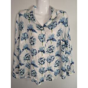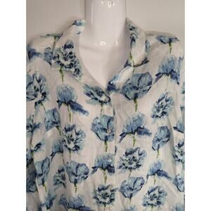 Charter Club White & Blue Floral Linen Button Lightweight Shirt Large Coastal
