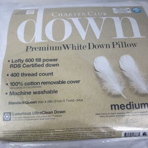 Charter Club White Down Medium Density Pillow, Standard/Queen