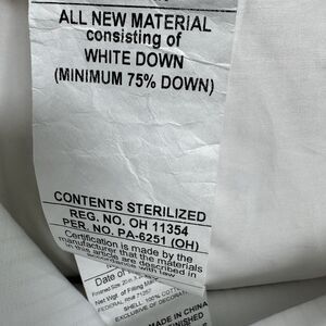 Fabric: cotton; 24 oz. down fill Fill power: 600 Thread count: 400
