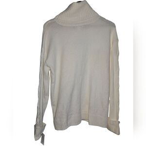 NWT Charter Club White Soft Pearl Embellished Cowl Turtleneck Fisherman's Sweater L Large