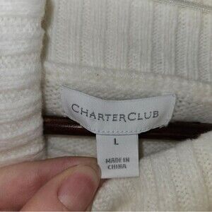 Charter Club White Soft Pearl Embellished Turtleneck Fisherman's Sweater L Large