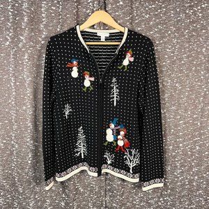 Charter Club Winter Christmas Snowman Long Sleeve Cardigan Sweater
