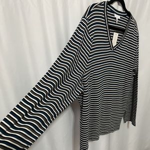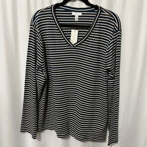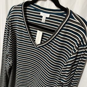 NWT. Features cotton blend stretch fabric, long sleeves, v-neck, sparkle stripe detail. No care instructions pictured. Size 3X.