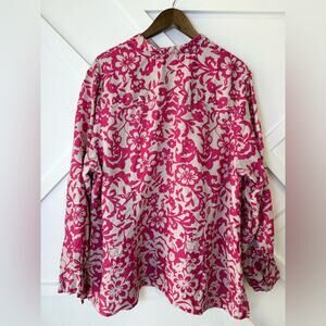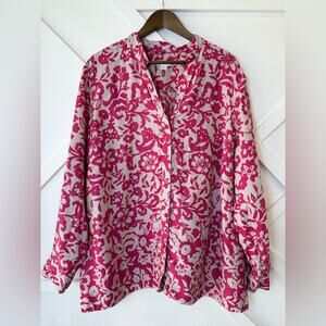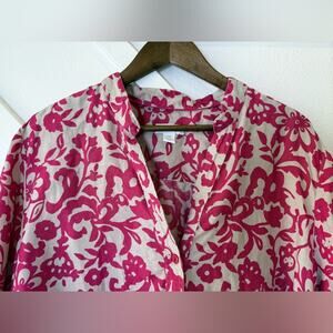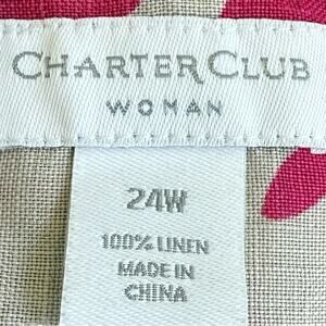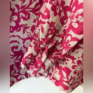 Charter Club Woman Pink & Cream Floral 100% Linen Button Down Blouse Size 24W