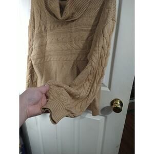 Charter club woman pullover turtleneck brown sweater in good condition. front and top of sleeve cable knit. cozy comfort cabin core lagenlook casual lounge norm core