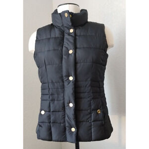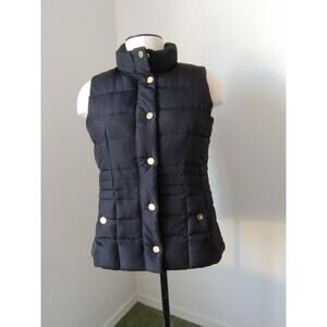 Charter Club Woman's Size Petite Black Puffer Vest with Gold Snaps and 2 pockets