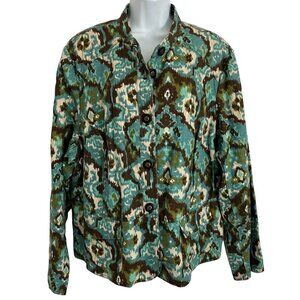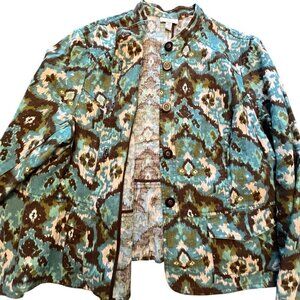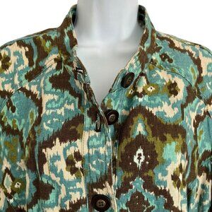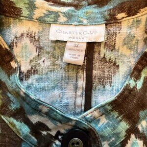 Charter Club Women 3X Plus Size 100% Linen Blazer Jacket Southwestern Artsy