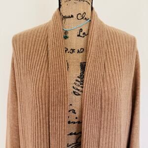 Charter Club Women Luxury Cashmere Ribbed Camel Tan Breezy Open Cardigan Sz XL