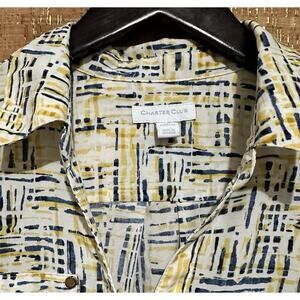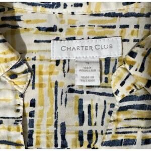 This Charter Club Women's Top in size Small features a yellow and blue print on 100% polyester fabric. The collared neckline adds a touch of sophistication to the breathable blouse, making it perfect for travel or casual occasions during the summer, fall, or spring seasons.