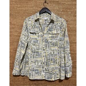 Charter Club Women Top Small Yellow Blue Print 100% Polyester