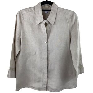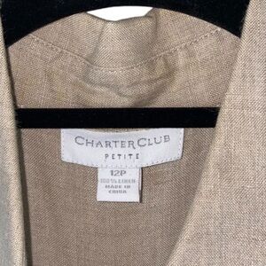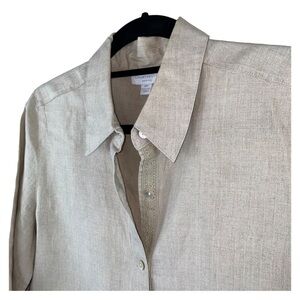Charter Club Women’s 100% Linen Full Button Front Neutral Beige Blouse Top 12P