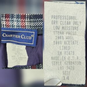 Charter Club Women's 12/14 Vintage 100% Wool Classic Retro Navy Plaid Skirt Suit