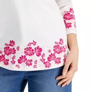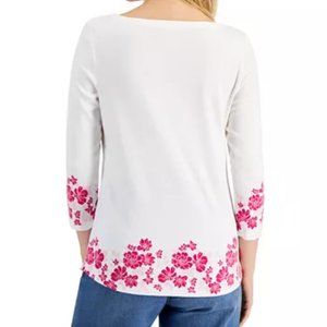 Showcase your love for chic florals with this charming boat-neck top from Charter Club.