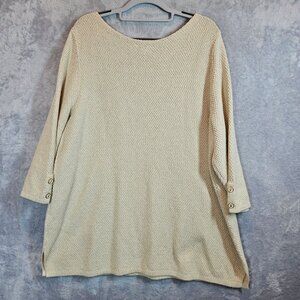 Charter Club Womens 3X Cream gold Texture Knit 3/4 Sleeve Sweater Button Accents