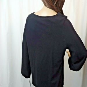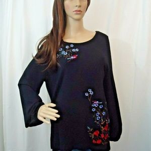Charter Club Women's Black Embroidered Floral Long Bell Sleeve Blouse, Size XL