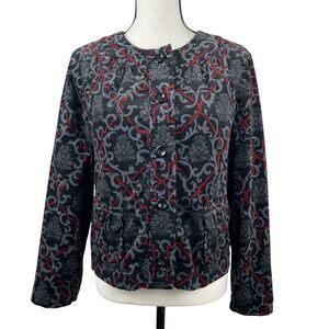 Charter Club Womens Blazer Jacket Medium Black Corduroy Button Front Long Sleeve