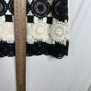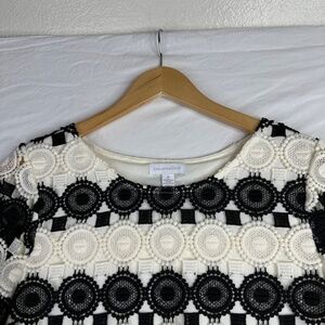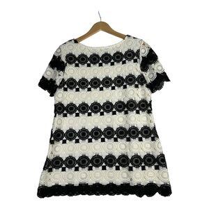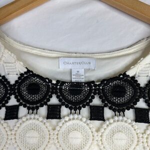 Charter Club Women’s Blouse Crochet Black/ Beige Short Sleeve Size Medium