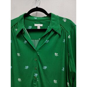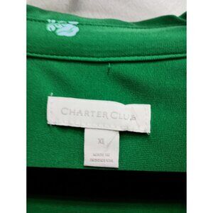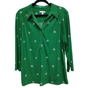 Charter Club Womens Blouse Top XL Kelly Green Floral Office Preppy 3/4 Sleeve