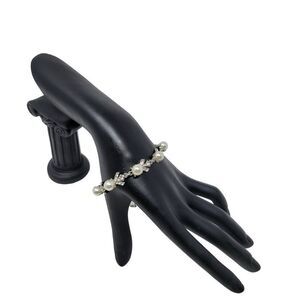 Charter Club Women's Bolo Slide Bracelet Silver Tone Faux Pearl Rhinestone