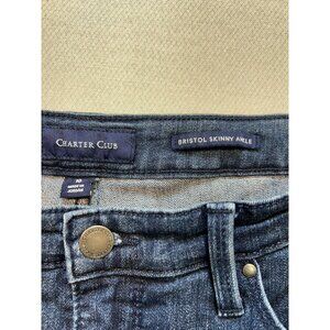 Charter Club Women's Bristol Skinny Ankle Jeans Embroidered Hem Sz 10 Blue Denim