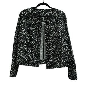 Charter Club Womens Button-Up Jacket All-Over Print Stretch Black White Size PM