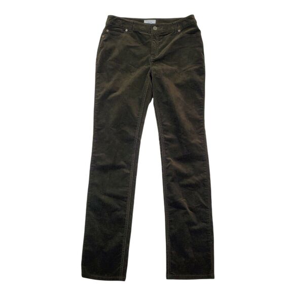 Charter Club Womens Corduroy Pants SZ 4 Solid Dark Green Mid Rise Casual Stretch