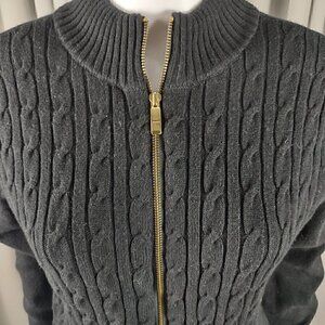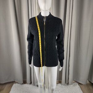 Charter Club Women's Cotton Blend No Pocket Full Zip Black Sweater Size Large