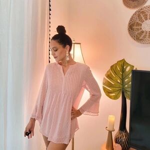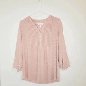 Charter Club Women's Double Ruffle Pintuck Long Sleeve Bohemian Blouses Small