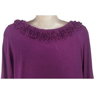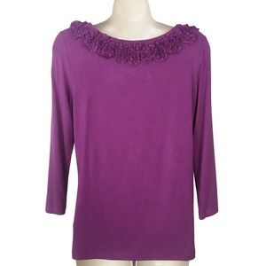 Charter Club Womens Embellished Shirt S Small Soutache 3/4 Sleeve Purple Stretch