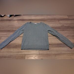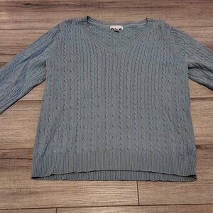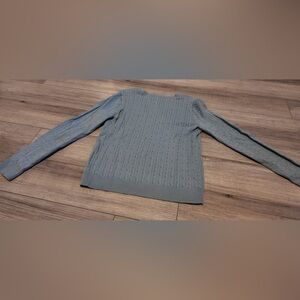 Stay cozy and stylish with this light blue cable knit sweater. Perfect for layering, this sweater offers both comfort and elegance.