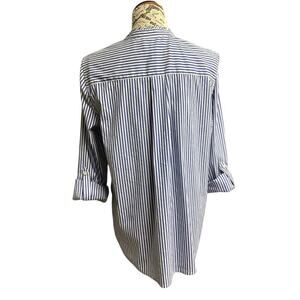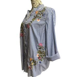 Charter Club Women's Embroidered Floral Button Down Shirt blue white striped XL