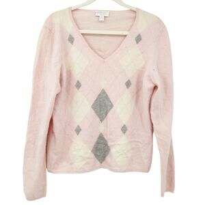 Charter Club Womens Fall Barbiecore Preppy Argyle 100% Cashmere Sweater Size PL