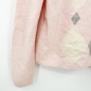 Charter Club Womens Fall Barbiecore Preppy Argyle 100% Cashmere Sweater in Pink. Size Large Petite.