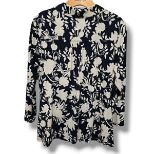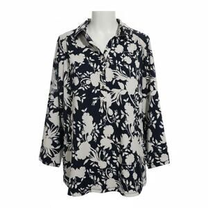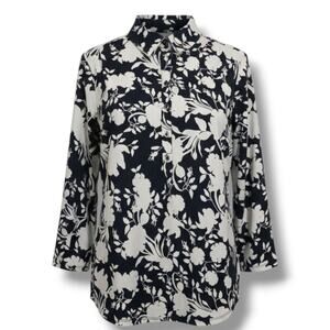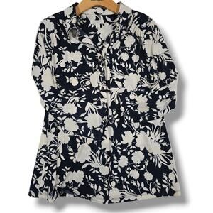 charterclub, womensblouse, floralprint, navytop, workwear, classicstyle, buttonfront, preowned, elegantlook, polyesterblend, timelessfashion, CasualChic