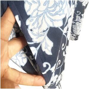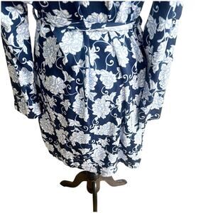 Charter Club Women’s Floral Robe With Tie Mid Length Size Large White Blue