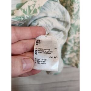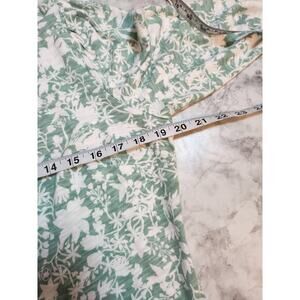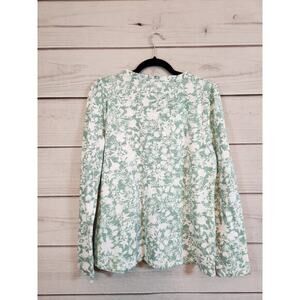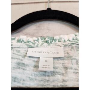 Charter Club Women's Green White Floral V-Neck Button Front Blouse Size Medium