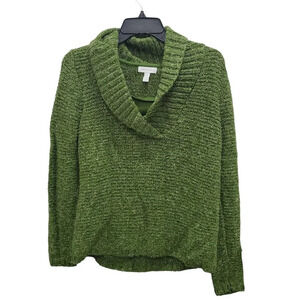 Charter Club Women's Green Wool Blend Chunky Knit Faux Layer V-Neck Sweater M