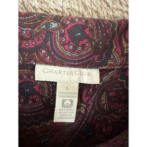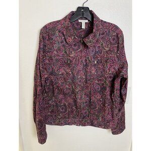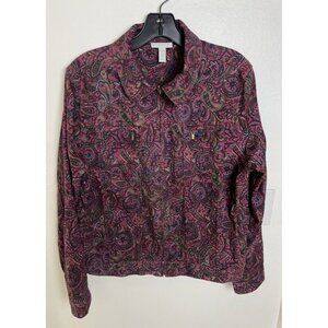 Charter Club Women’s L Maroon Paisley Long Sleeve Micro Corduroy Full Zip